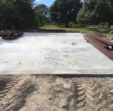 We construct concrete pads sized and aligned precisely to match metal building plans, ensuring proper anchor placement and smooth installation.